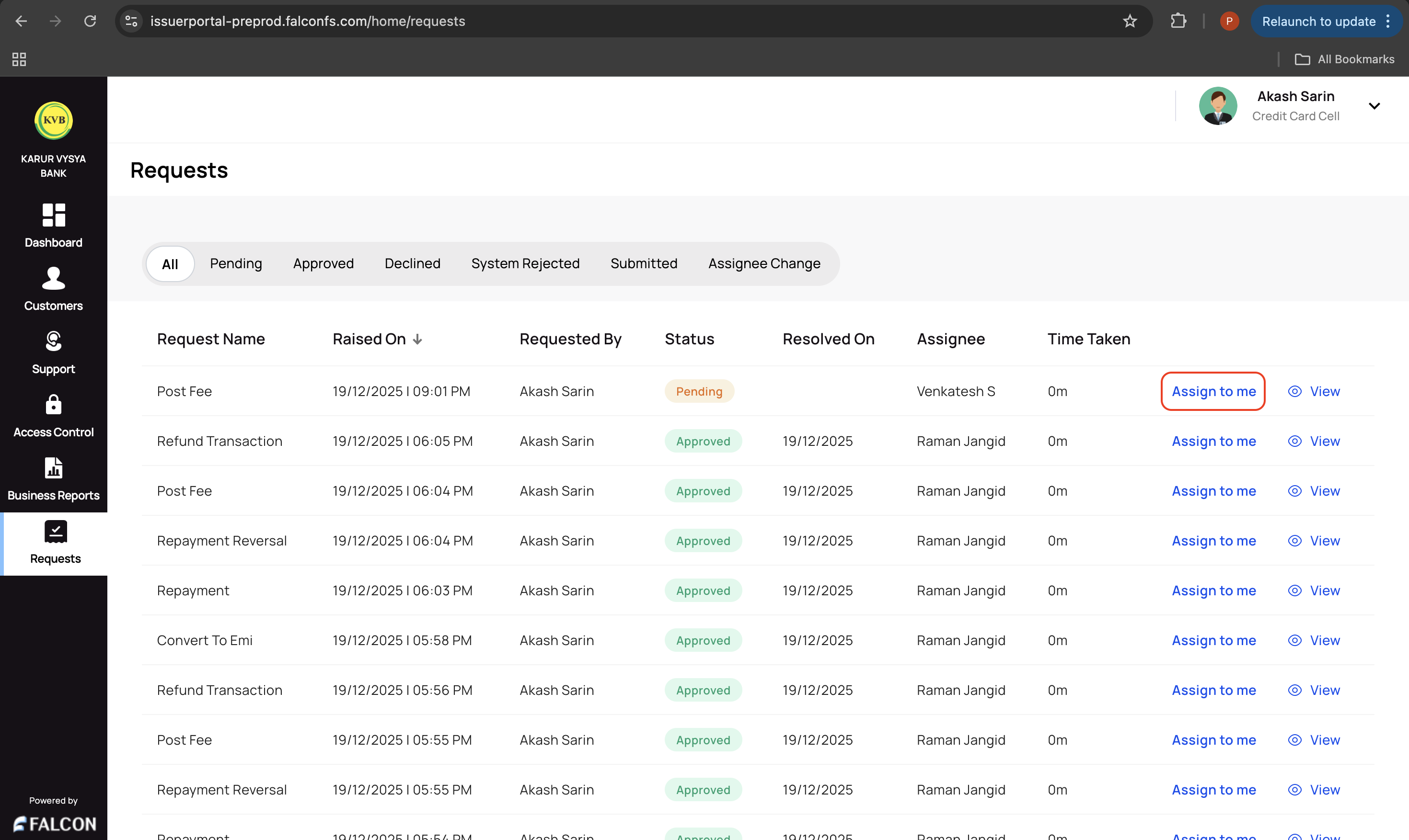 All requests are assigned to a checker (admin and support) automatically. An admin checker can claim a request using the Assign to me option.